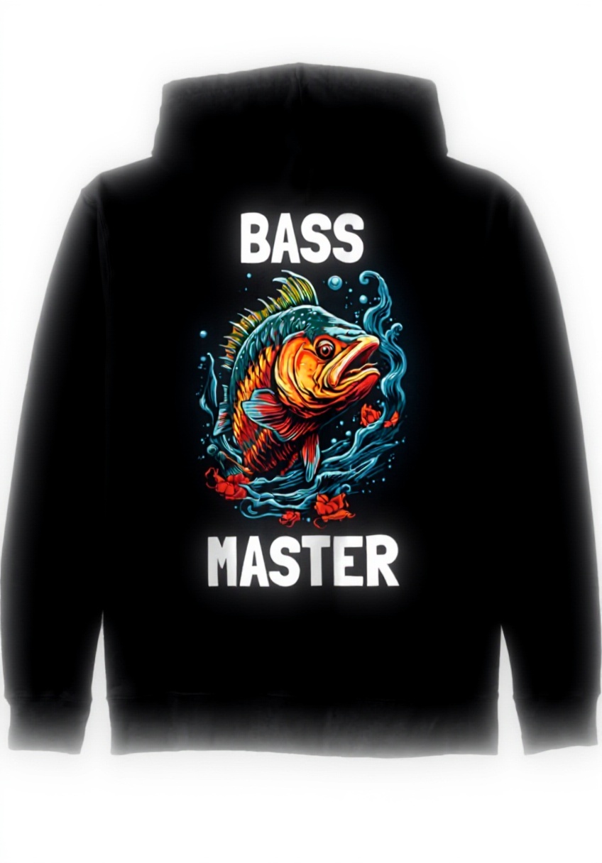 Diese Kapuzenjacke besticht durch ein auffälliges Barsch-Motiv mit dem Spruch “Bass Master”, das mittels KI-Design entworfen wurde, und bietet mit 241g Gewicht einen leichten, klassischen Schnitt sowie einen verstärkten Nacken für zusätzlichen Halt und Langlebigkeit.
