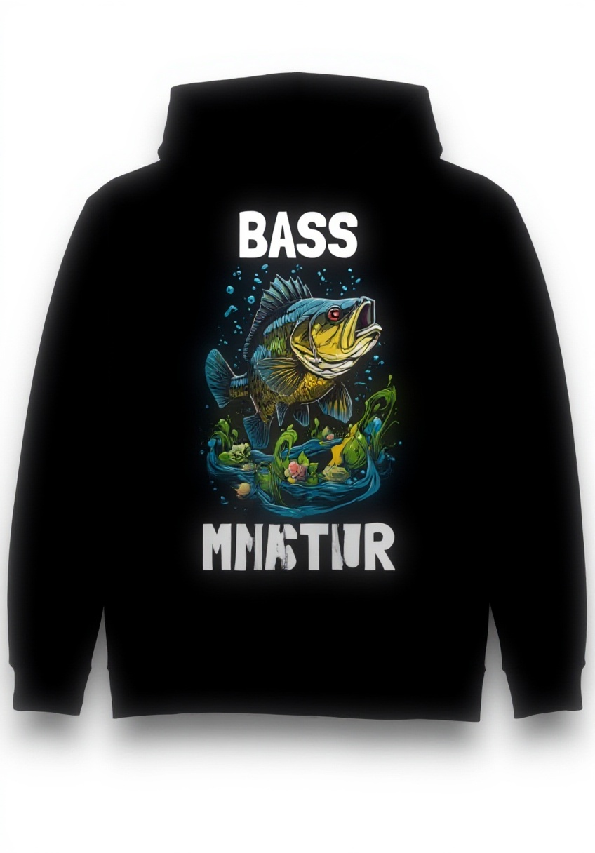 Diese Kapuzenjacke besticht durch ihr cooles Design mit einem detailreichen Barsch-Motiv und dem Aufdruck ‘Bass Master’, das von KI gestaltet wurde. Hergestellt aus hochwertigem Material in einem klassischen Schnitt, wiegt sie nur 241 Gramm und bietet mit einem verstärkten Nackenbereich zusätzlichen Komfort und Halt.