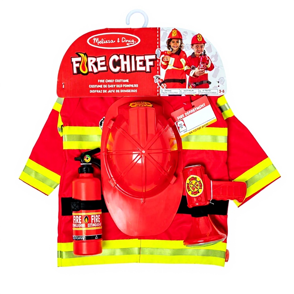 Das hochwertige Feuerwehrkostüm von Melissa & Doug überzeugt durch sein realistisches Design mit leuchtend roter Jacke und reflektierenden Streifen für optimale Sichtbarkeit. Der verstellbare Helm und das strapazierfähige Material sorgen für authentische Löscheinsätze und lang anhaltenden Spielspaß.
