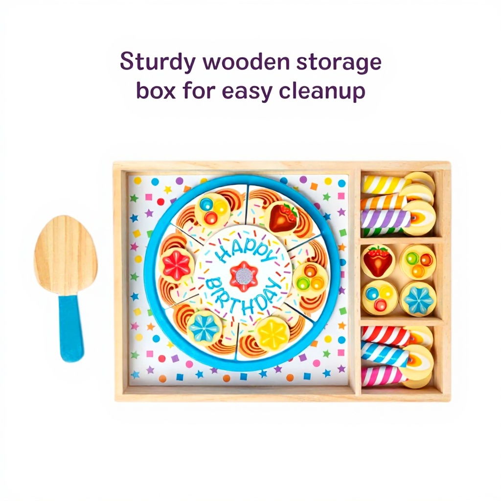 Ideal für den Einsatz zu Hause, im Kindergarten oder bei Spieltreffen, wo Kinder Geburtstagsfeiern nachspielen können. Der Kuchen fördert das gemeinsame Spiel in Gruppen und eignet sich perfekt für Rollenspiele, bei denen Kinder lernen, zu teilen und zu kommunizieren. Er kann täglich verwendet werden, um die Freude am Feiern und Dekorieren zu erleben.