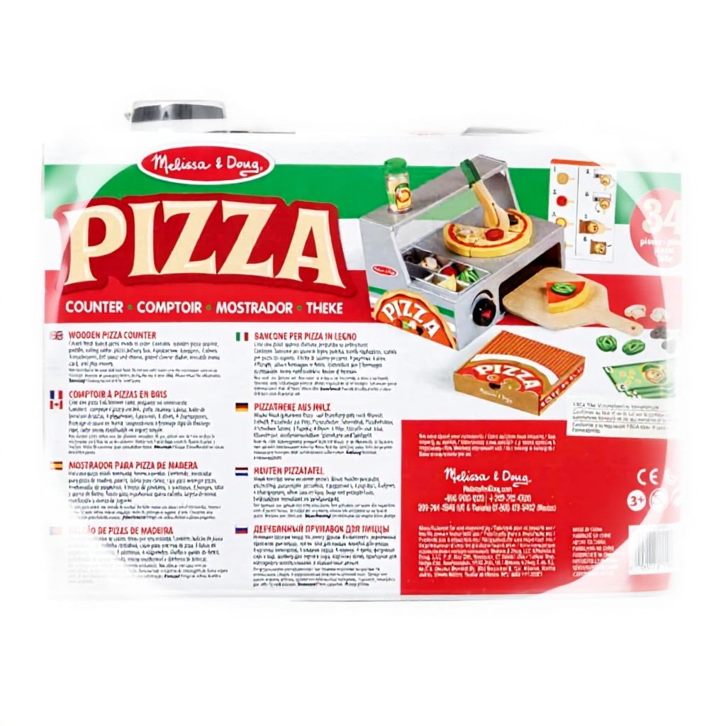 Das 41-teilige Holz-Pizzeria-Set von Melissa & Doug bietet eine komplette Spielküche mit Theke, Pizzaboden und vielfältigen Zutaten wie Käse, Gemüse und Wurst. Alle Teile sind aus hochwertigem Holz gefertigt und speziell für kleine Hände konzipiert, um sicheres und langlebiges Spielen zu ermöglichen.