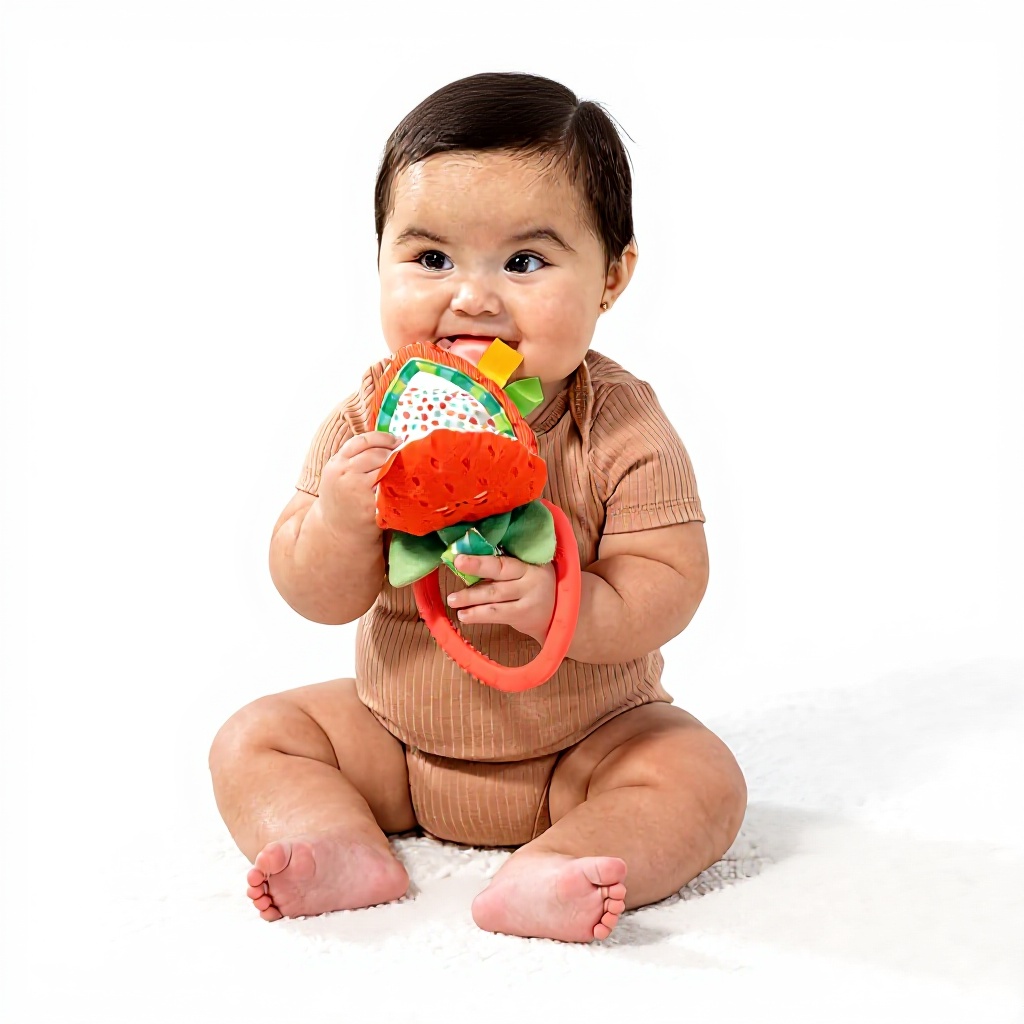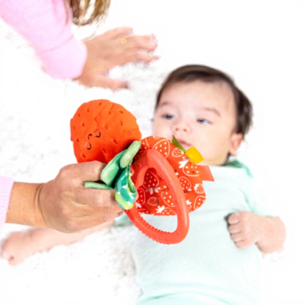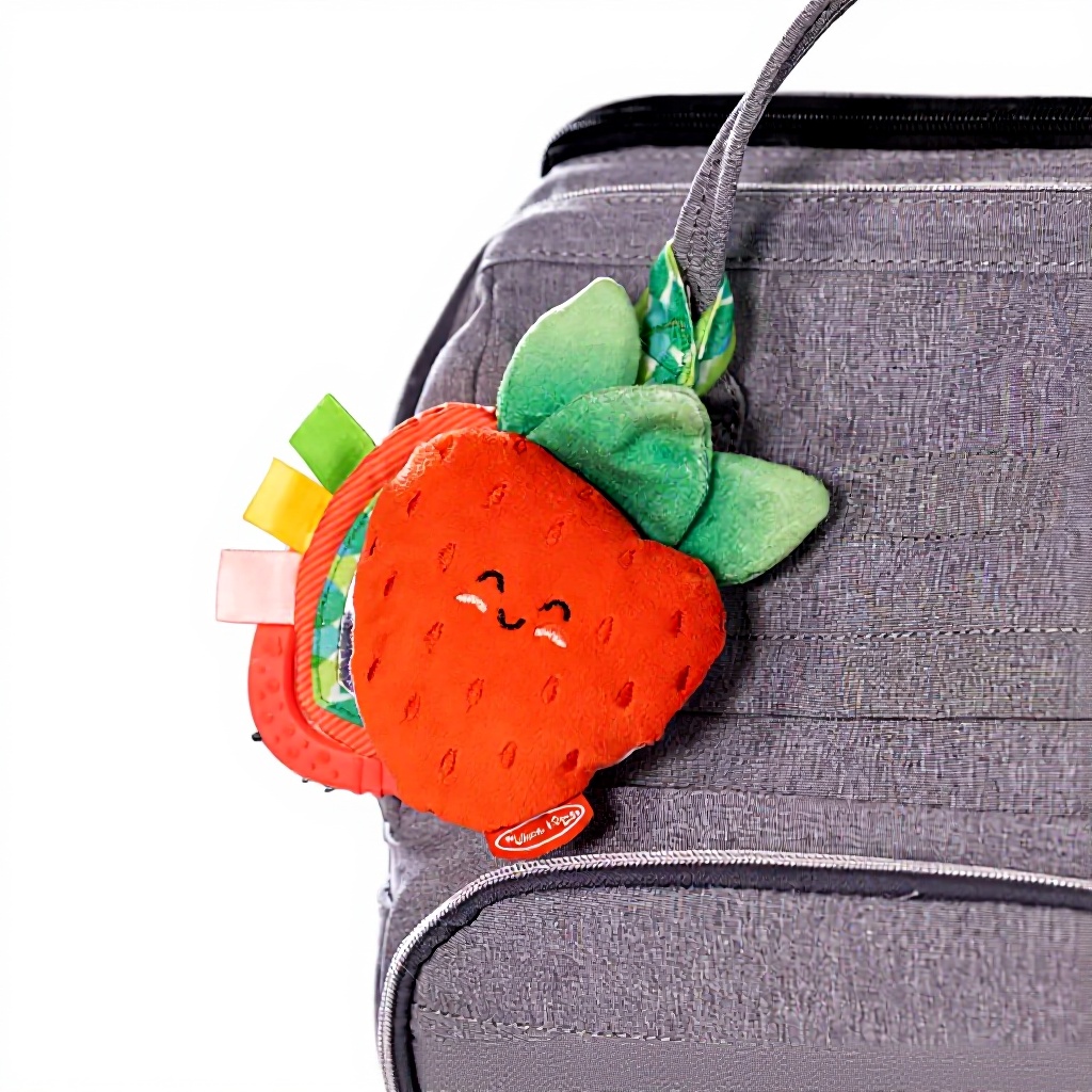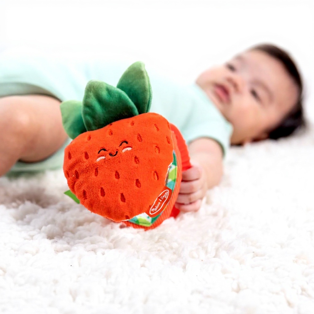 Das innovative Kuckuckspielzeug von Melissa & Doug kombiniert drei mehrfach strukturierte Erdbeerscheiben mit verschiedenen sensorischen Elementen. Die knisternden Blätter, der integrierte Spiegel und der lebensmittelechte Beißring aus Silikon bieten Babys vielfältige Sinneserfahrungen. Die seidigen Bänder und unterschiedlichen Texturen regen zum Erkunden an und fördern die Entwicklung.