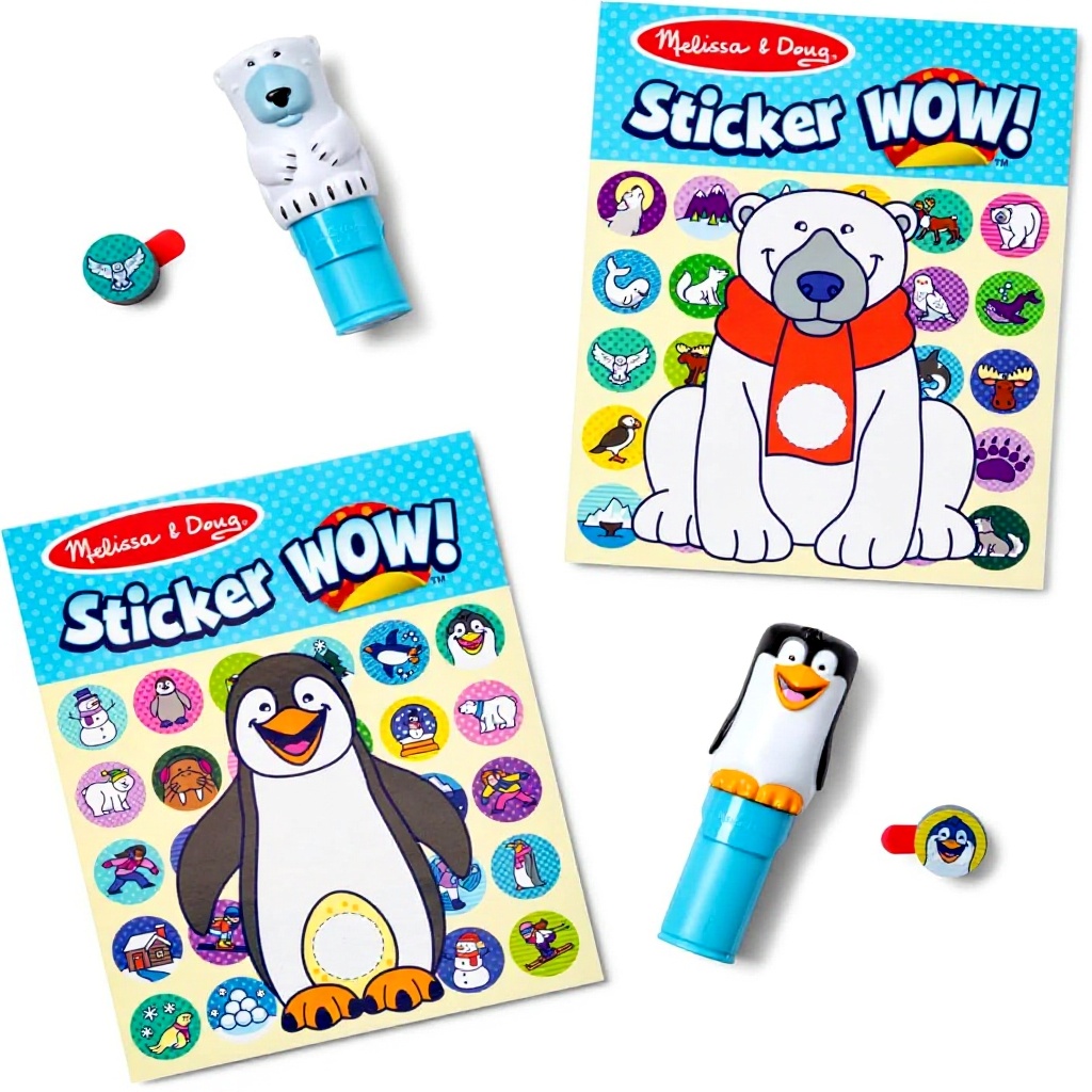 Das Sticker Wow Winter Vorteilspack von Melissa & Doug revolutioniert das Aufkleberspiel mit zwei komplett ausgestatteten Sets. Enthalten sind die beliebten Figuren Eisbär Tofu und Pinguin Licorice, jeweils mit eigenem Aufkleberstempel und 300 hochwertigen, leicht entfernbaren Aufklebern. Zusätzlich erhalten Sie zwei Bonus-Aufkleberstapel mit je 150 weiteren Aufklebern für noch mehr kreative Möglichkeiten.