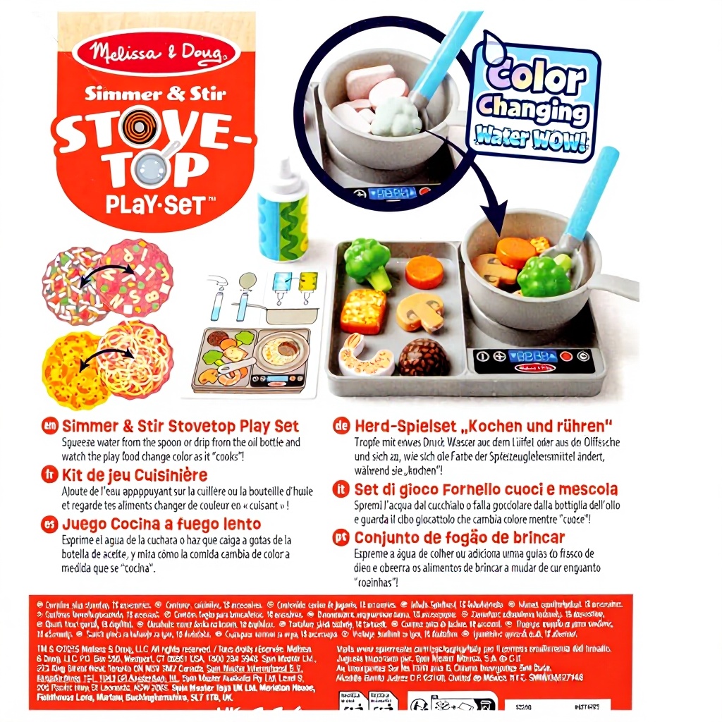 Das innovative Water Wow Koch Spielset von Melissa & Doug revolutioniert das Rollenspiel in der Kinderküche. Das 19-teilige Set begeistert mit seinem einzigartigen Farbwechseleffekt, bei dem die Spiellebensmittel durch Wasser von tiefgefroren zu gekocht wechseln und wieder zurückverwandeln. Hergestellt aus hochwertigem Kunststoff, bietet das Set einen Herd mit Platte und Grillfläche, verschiedene Kochutensilien und eine Auswahl an Lebensmitteln für abwechslungsreiche Spielerlebnisse.