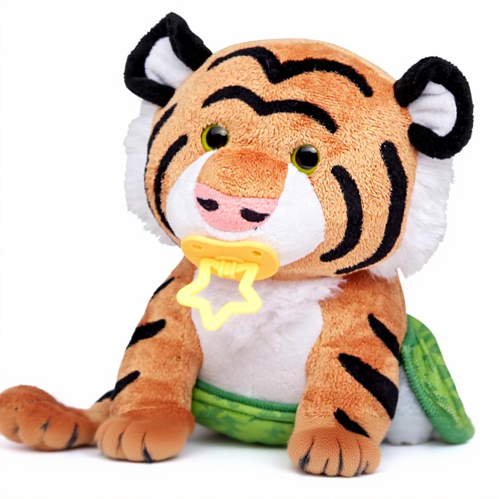 Das Melissa&Doug Baby Tiger Stofftier ist ein hochwertiges Kuscheltier aus weichem Polyester, das mit liebevollen Details wie einem abnehmbaren Schnuller, einer Babyflasche, die in das Maul passt, einer Stoffwindel und einer doppelseitigen Aktivitätenkarte ausgestattet ist. Es fördert interaktives Spielen und bietet eine realistische Erfahrung für neugierige Kinder.
