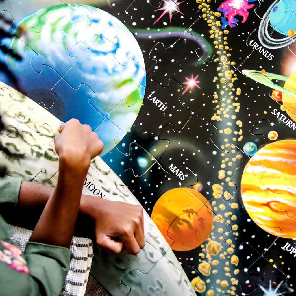 Dieses Weltraum-Puzzle eignet sich perfekt für das Spielen auf dem Boden im Kinderzimmer, im Kindergarten oder im Wohnzimmer. Die großen Teile lassen sich leicht auf glatten Oberflächen zusammensetzen und bieten ausreichend Platz für mehrere Kinder. Ideal für ruhige Spielphasen am Nachmittag, als pädagogische Aktivität in Bildungseinrichtungen oder als unterhaltsame Beschäftigung an Regentagen.